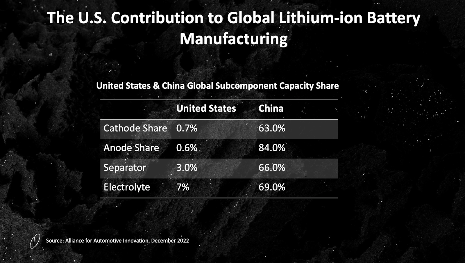 Similar gaps are found in analyses of the global subcomponent capacity share, where China dwarfs the US in cathode, anode, separator, and electrolyte. All of this is a significant economic issue, because America is missing crucial opportunities. But it stretches beyond finances. It is also a major security risk. America is reliant on other countries to provide the critical energy sources it needs. What happens if a diplomatic incident reduces a country’s willingness to trade with the US?